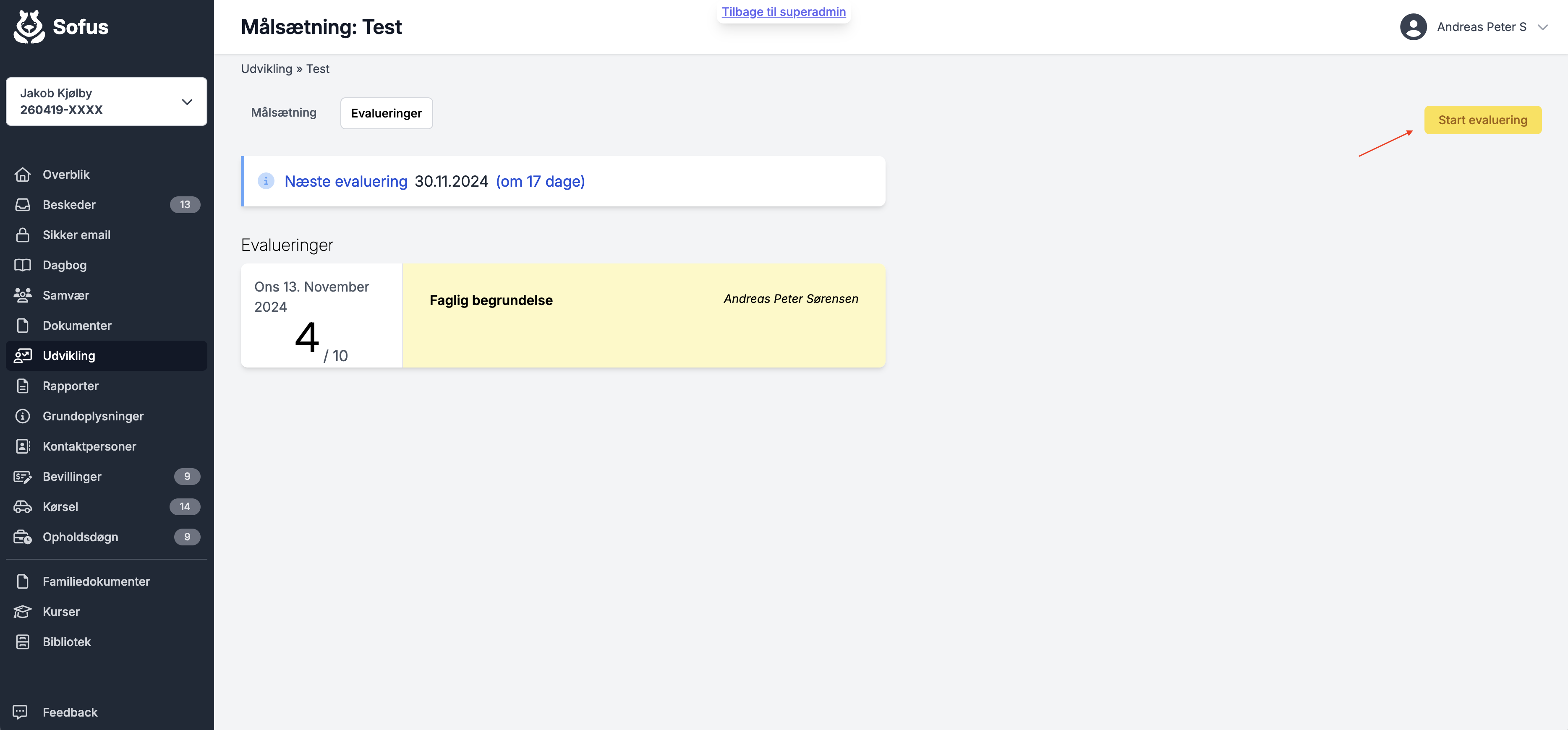 Tryk Start evaluering.