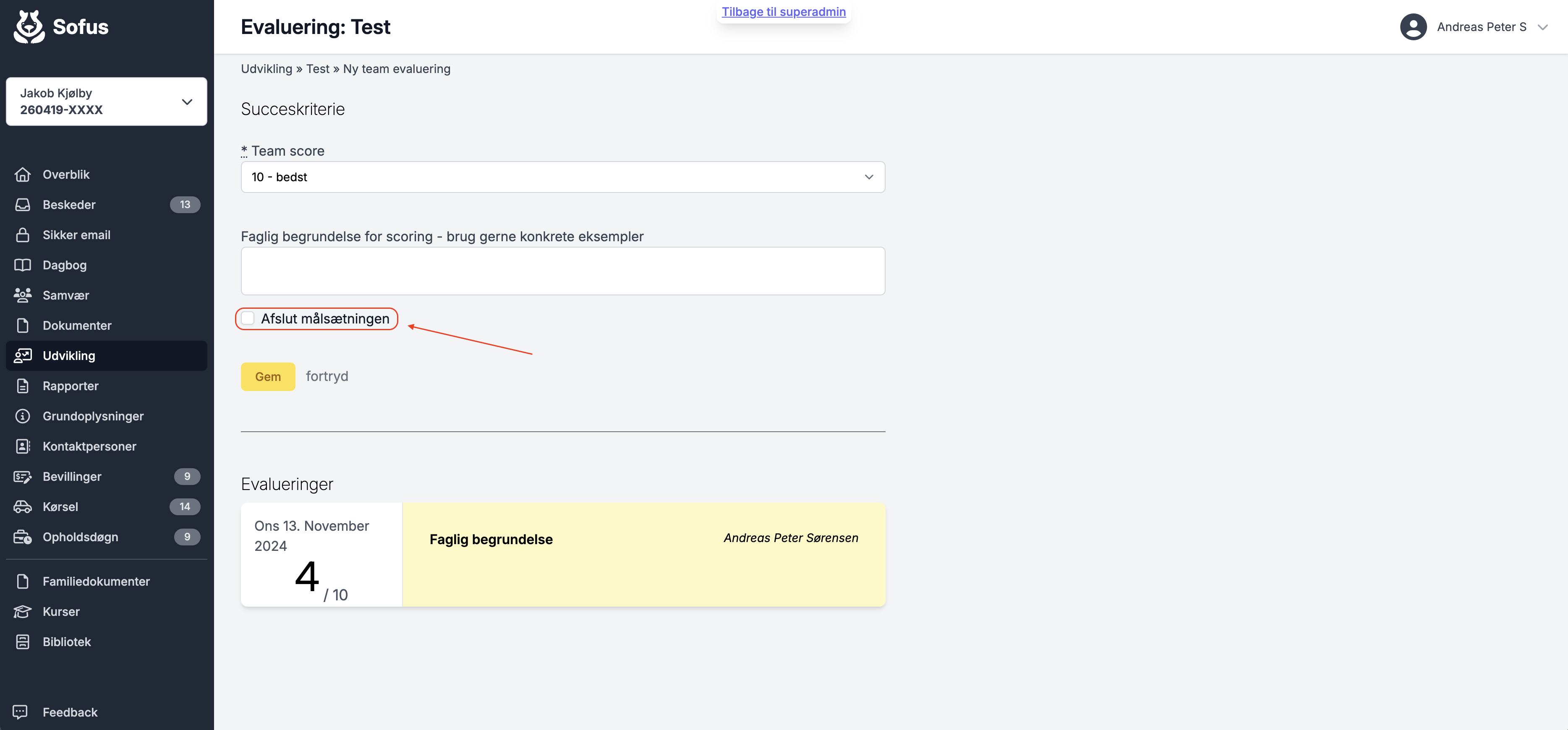 Indtast faglig begrundelse for scoring hvis dette er relevant.